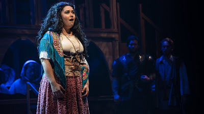 Ben McCormick gives one of the best musical performances of 2017 as Quasimodo, the Hunchback of Notre Dame. His movements, his expressions, his hops and leaps across the stage are so real and so raw, you cannot take your eyes off him for a moment, for fear you might miss something important. He superbly communicates his character's emotional anguish and pain, his physical deformities, his love for the beautiful Esmeralda and an unbridled heroism in typical, dark Disney fashion. His singing, in particular, "Out There" and "Heaven's Light" is rich and emotional.